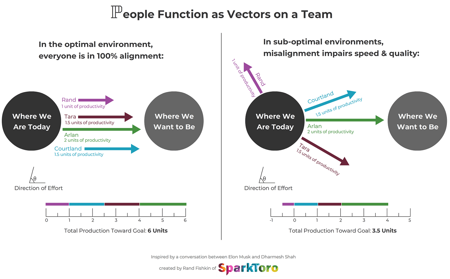 I keep coming back to vector alignment. Everyone rowing in the same direction matters more than how hard each person rows alone.