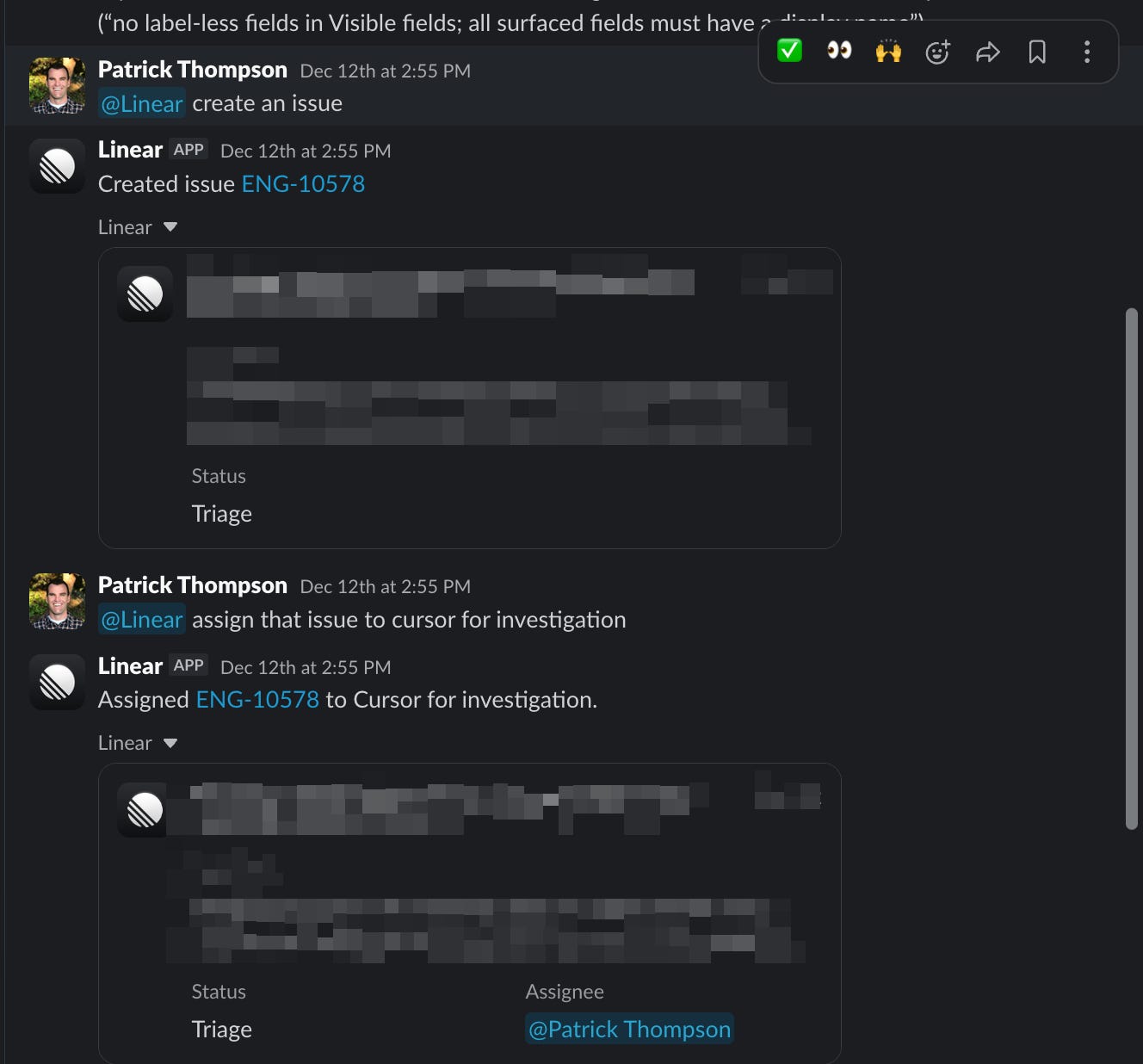 A simple example is creating a bug in Linear via Slack, then using Cursor to investigate it â all from the same place.